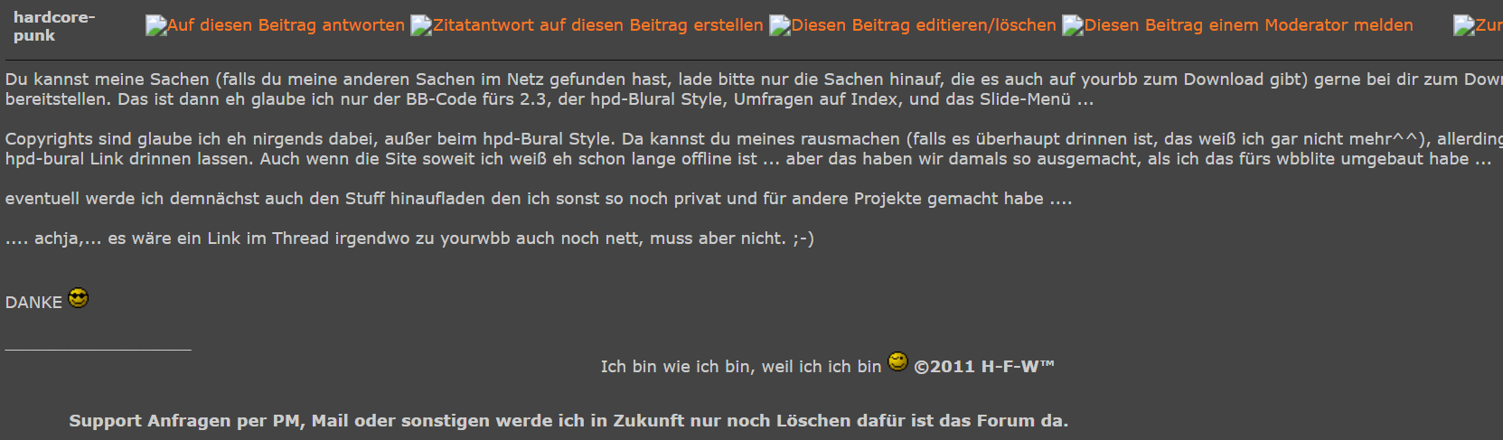 | Hacks4wbb by HFW™ » Rund um Hacks 4 WBB » Copyright & Erlaubnisse » Erlaubnisse von Codern & Eigentum von HFW™ » hardcorepunk |