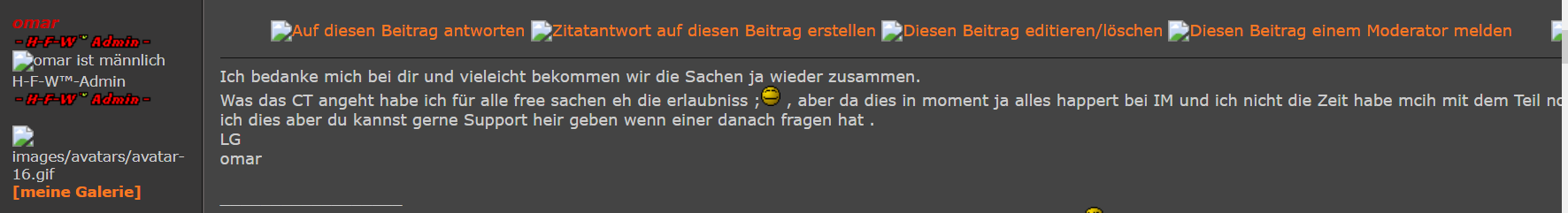 | Hacks4wbb by HFW™ » Rund um Hacks 4 WBB » Copyright & Erlaubnisse » Erlaubnisse von Codern & Eigentum von HFW™ » frank CT FREE |