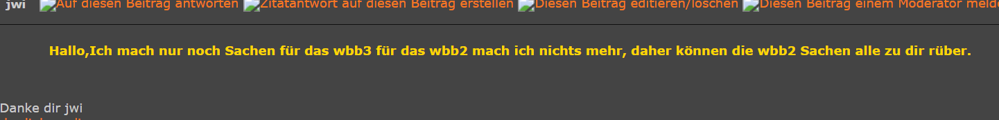 | Hacks4wbb by HFW™ » Rund um Hacks 4 WBB » Copyright & Erlaubnisse » Erlaubnisse von Codern & Eigentum von HFW™ » jwi |